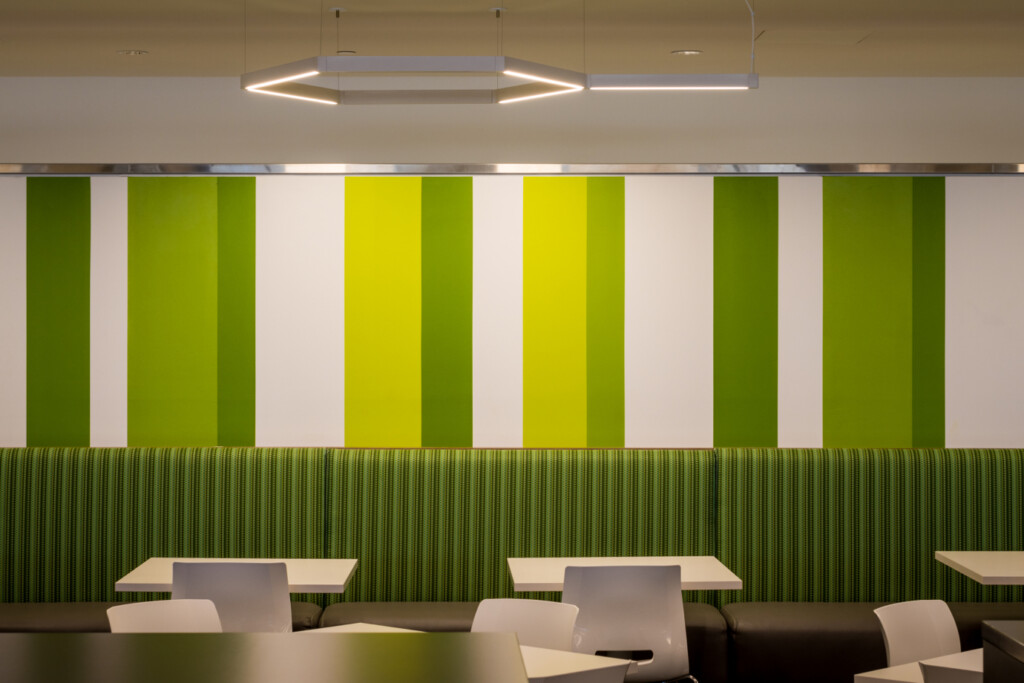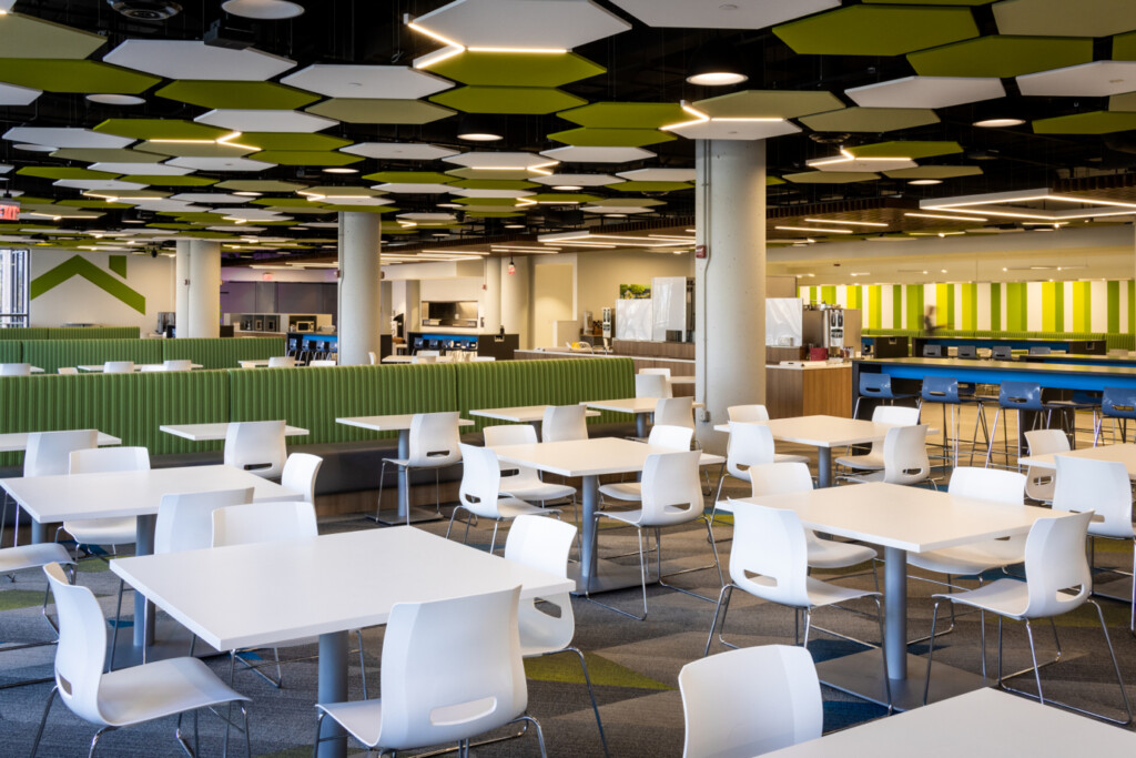 The renovation of Freddie Mac’s main cafeteria and kitchen on their campus was a multi-phase project to minimize disruption to the staff and food service / catering operations in the fully occupied building.