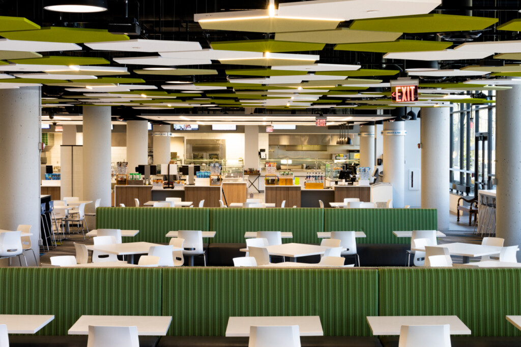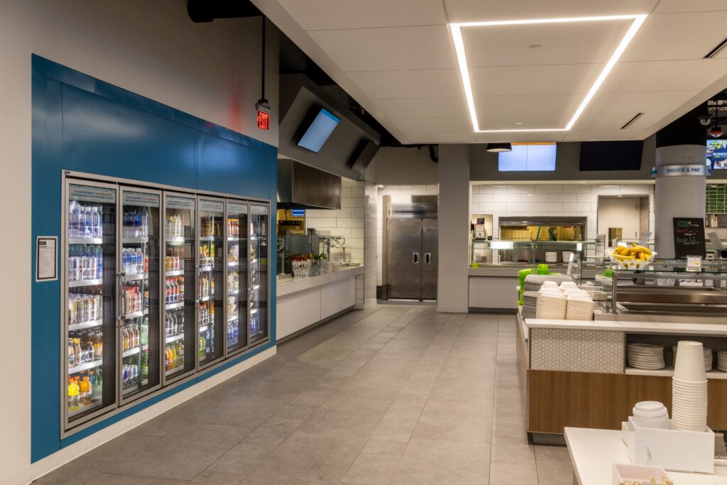 The project was strategically split into 3 phases, with the main cafeteria seating area in phase 1, the food service area in phase 2 and the commercial kitchen renovation in phase 3. Throughout the project, Mark Construction worked closely with Freddie Mac to minimize any disruptions even providing temporary food service areas created with a mix of temporary and relocated kitchen equipment. All the phases were completed during the summer months when staff use of the cafeteria was lighter but required all work to be completed each phase to be fully-operational by Labor Day. Mark Construction and the project team worked together to develop a plan to keep the commercial kitchen fully operational for the duration of the phase 1 and phase 2 projects including installing full-height temporary walls and scheduling all work in the operational kitchen to be off-hours. Due to existing known plumbing issues, all of the existing sanitary lines were removed and new sanitary lines were installed. Due to existing leaks to the floor below, the existing epoxy floor was also removed and new epoxy floor was installed. This was a challenging project with many stakeholders but the project team worked together to alleviate concerns and provided a new space that will be enjoyed by thousands of employees for decades to come.